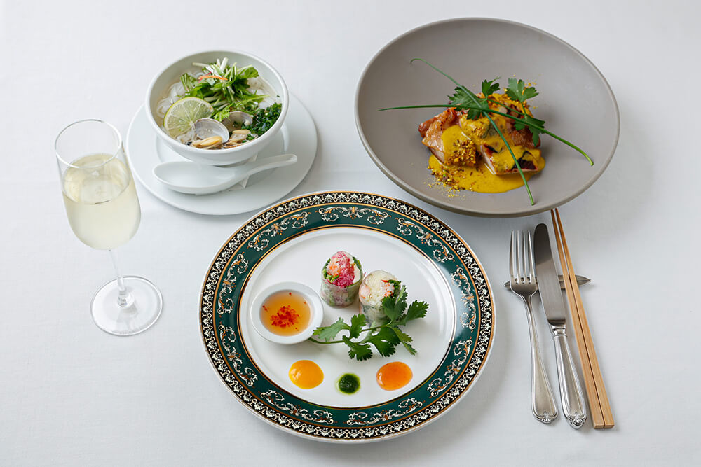 ベトナム料理特有の豊かな風味と、フレンチの洗練された技法、そして赤レンガ造りの東京駅を見下ろすロケーション。3つの魅力が融合した「カサブランカシルク」のベトナムフレンチは、まるで旅先で過ごすひとときのような心地よい体験をもたらしてくれます。ゆったりと落ち着いた空間で、異国情緒あふれるコースをご堪能ください。