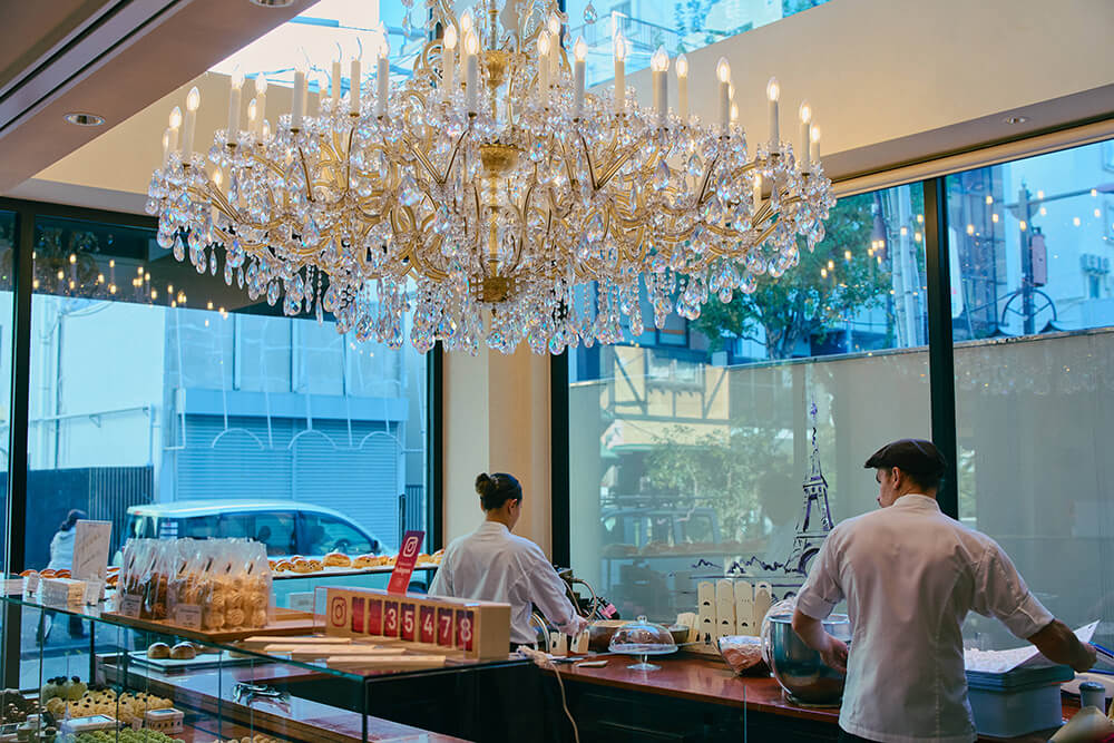 「オー・メルベイユ・ドゥ・フレッド」は、フランス北部リールに本店を構え、世界50店舗以上を展開するパティスリーです。2020年に誕生した神楽坂店は、アジアにおける1号店。看板スウィーツ「メルベイユ」をパティシエが目の前で手作りする光景を楽しめるのは、全店舗共通の魅力です。