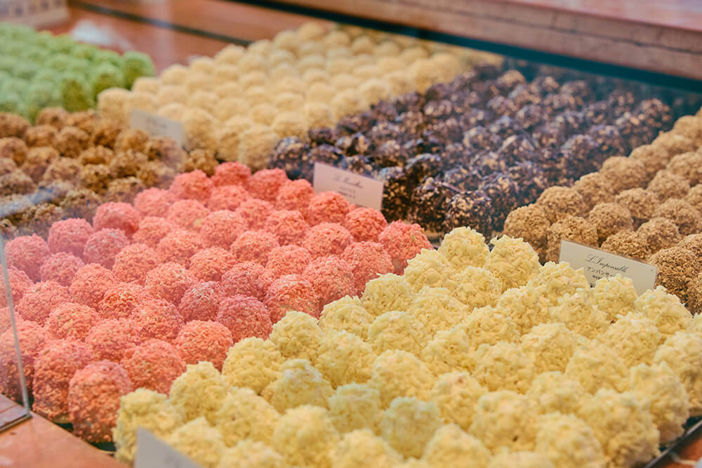 軽快なフランスの音楽が流れ、ボンジュールの挨拶に迎えられる店内は、空気までフランスそのもの。シャンデリアに彩られたバロック調の空間は、1階はショップ、2・3階はイートインが可能なカフェスペースとなっています。手作りの伝統菓子やパンとともに、フランス流の優雅な時間を堪能できる一軒です。
