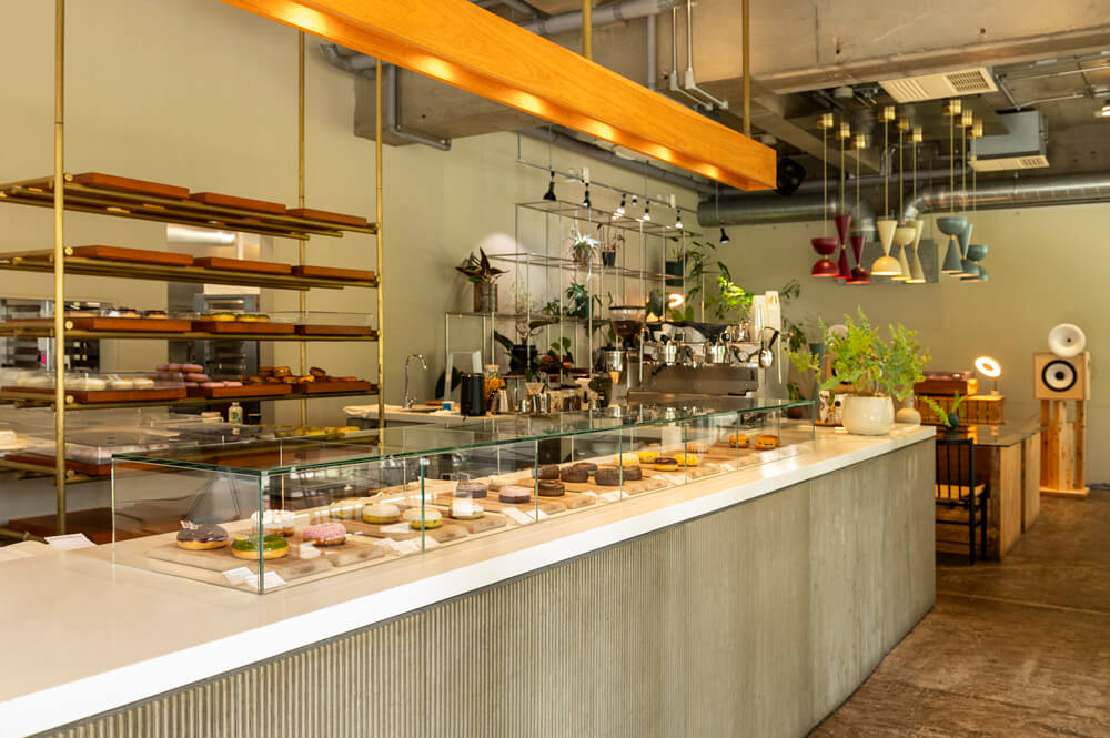 2017年に永田町にオープンした「ホーカスポーカス」は、ケーキのようにカラフルなドーナツが並ぶショップ&カフェ。ショーケースには彩り豊かなドーナツが常時20種前後揃い、選ぶ楽しさも魅力のひとつです。ドーナツの製法は“蒸し”“焼き”“揚げ”の3タイプ。ドーナツはすべて、併設のカフェでイートイン可能です。