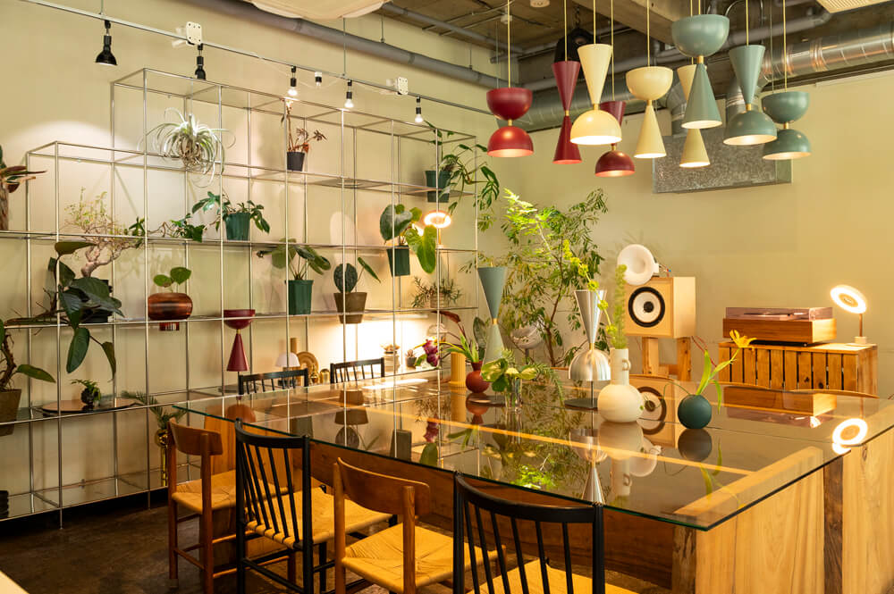 大きな窓から光が入る開放的なカフェスペース。コーヒーは代々木公園のリトルナップコーヒーのもの