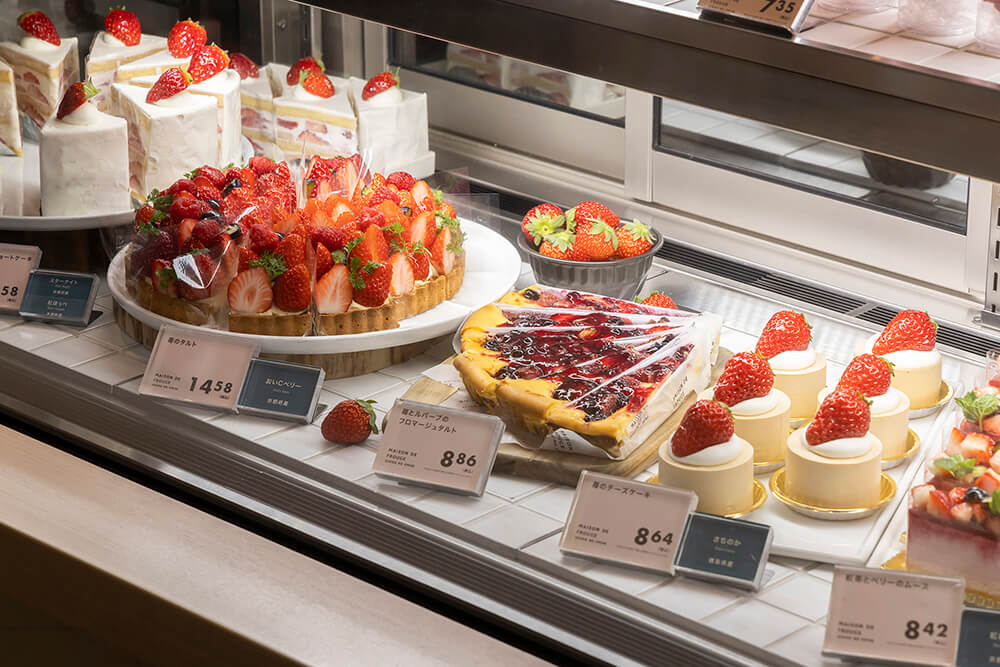 ・苺のプレミアムショートケーキ1,458円~(イートイン1,485円~)・苺のタルト1,458円~(イートイン1,485円~)